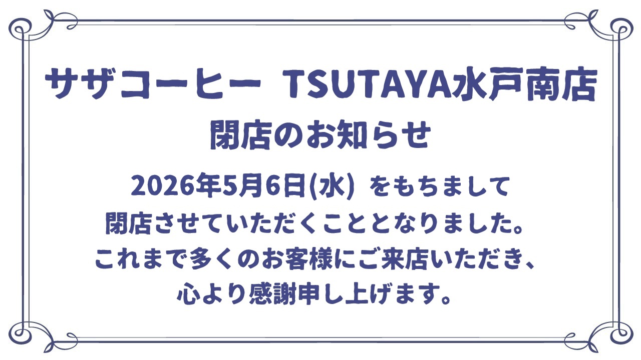 平素よりサザコーヒー水戸南店をご利用いただき、誠にありがとうございます。