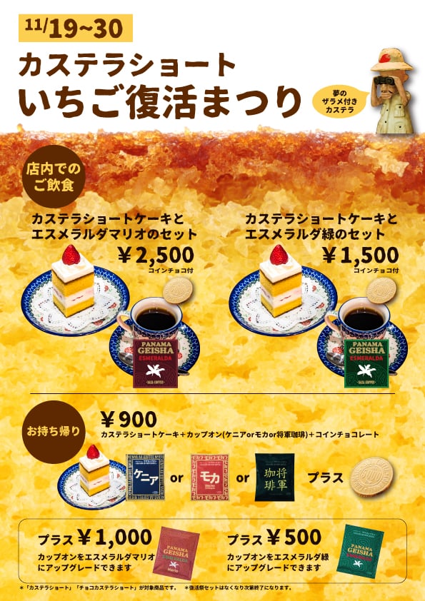 ▼🍰カステラショート いちご復活まつり 11/19(水)~11/30(日)