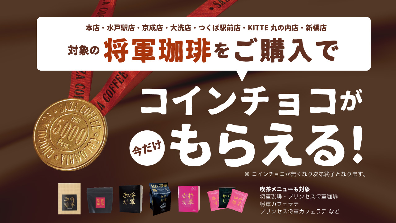 【対象店舗限定】将軍珈琲購入で🥇コインチョコがもらえる! 12/1(月)〜